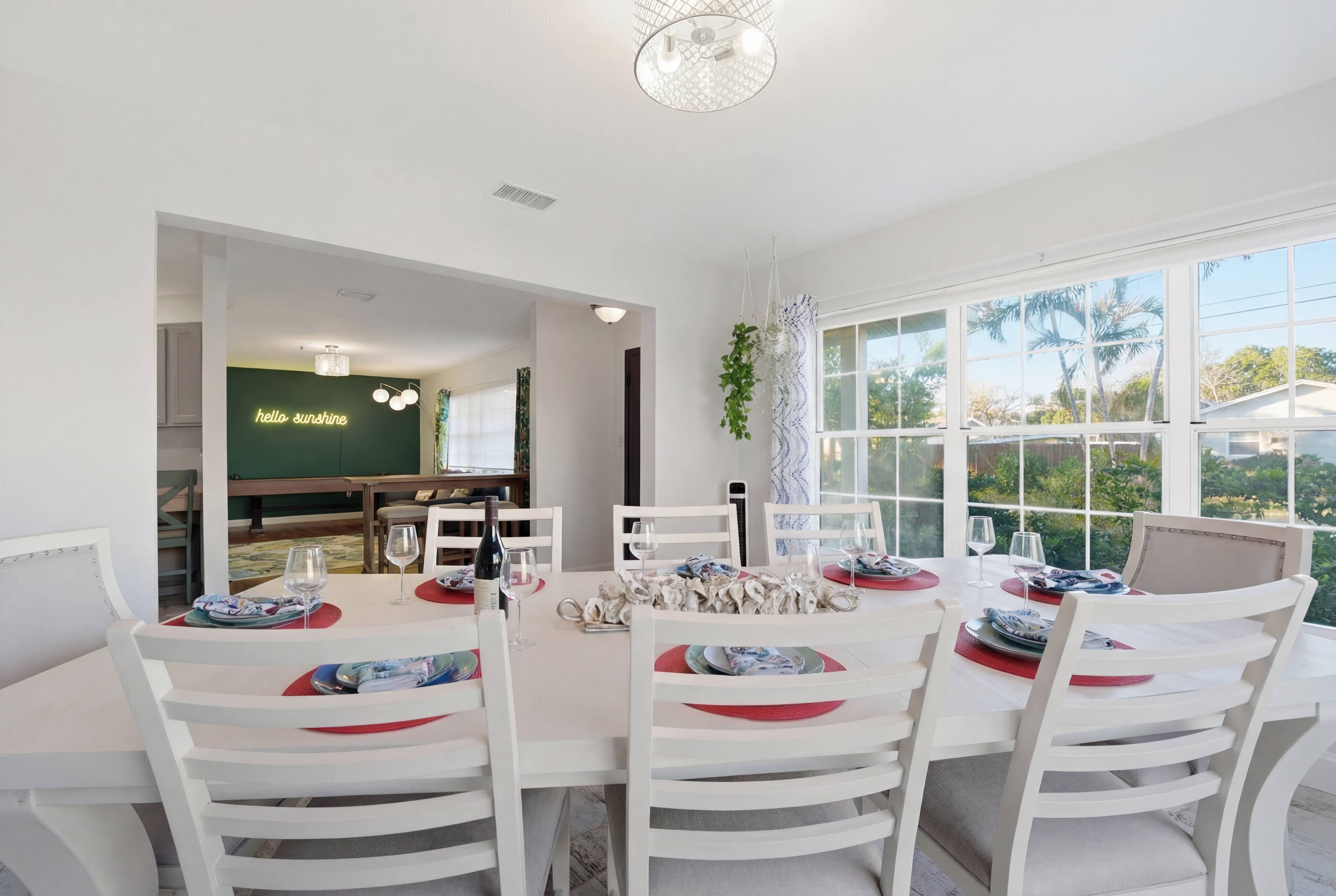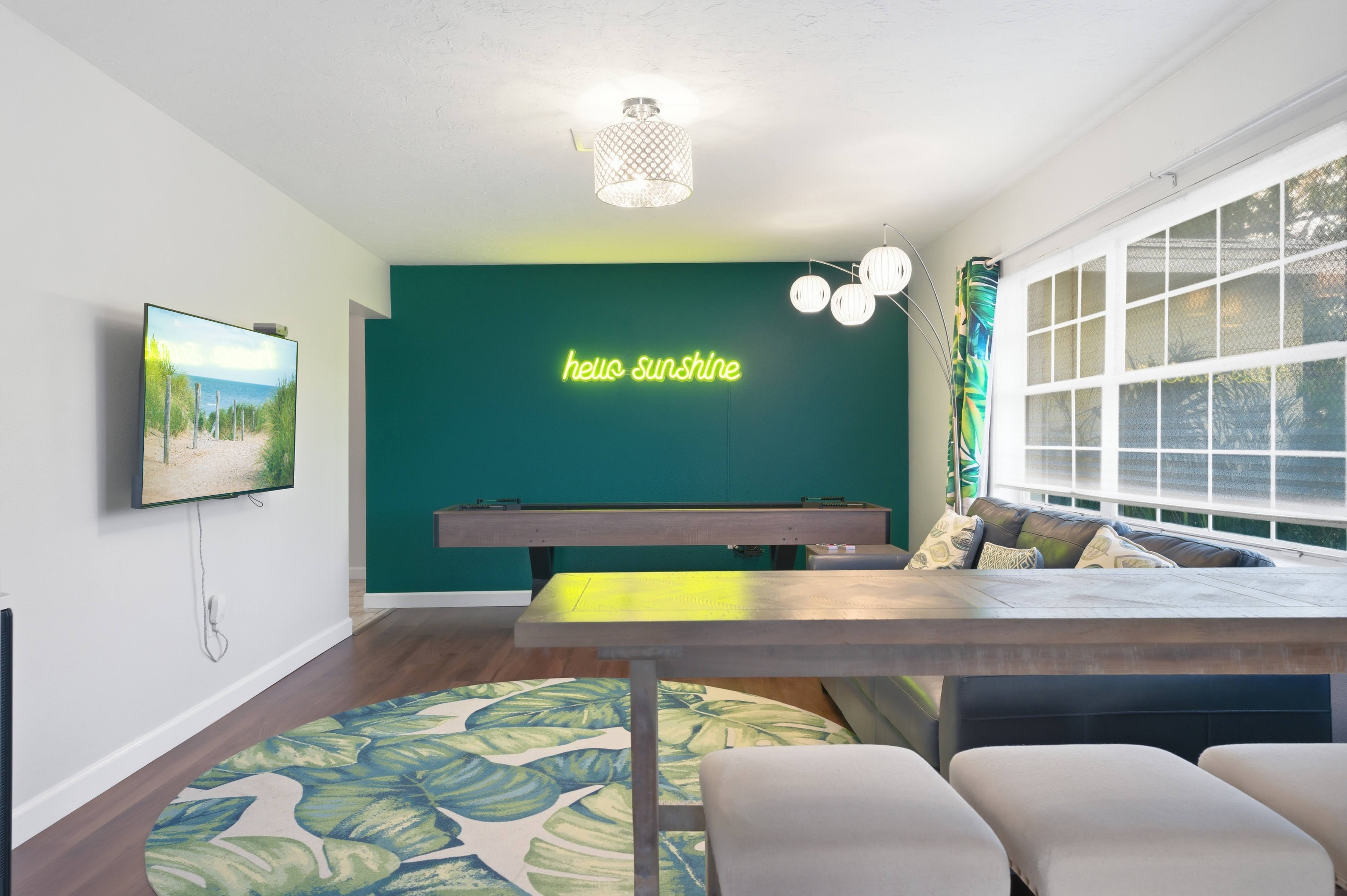 Soak in some old Florida charm, swim, play, and relax at The Sunshine House! This serene, easygoing getaway is just waiting for you! *Heated pool, hot tub, pickle ball/basketball court, fire pit, gazebo & yard games! *Game room w/shuffleboard and NES console *2 luxurious king bedrooms, 1 queen, 1 bunk *Spacious kitchen, dining & family rooms *Pool and Beach gear available Prime location! ~15 mins to Anna Maria Island ~15 mins to Bradenton ~10 mins to IMG ~5 mins to 3 groceries and ABC Liquor