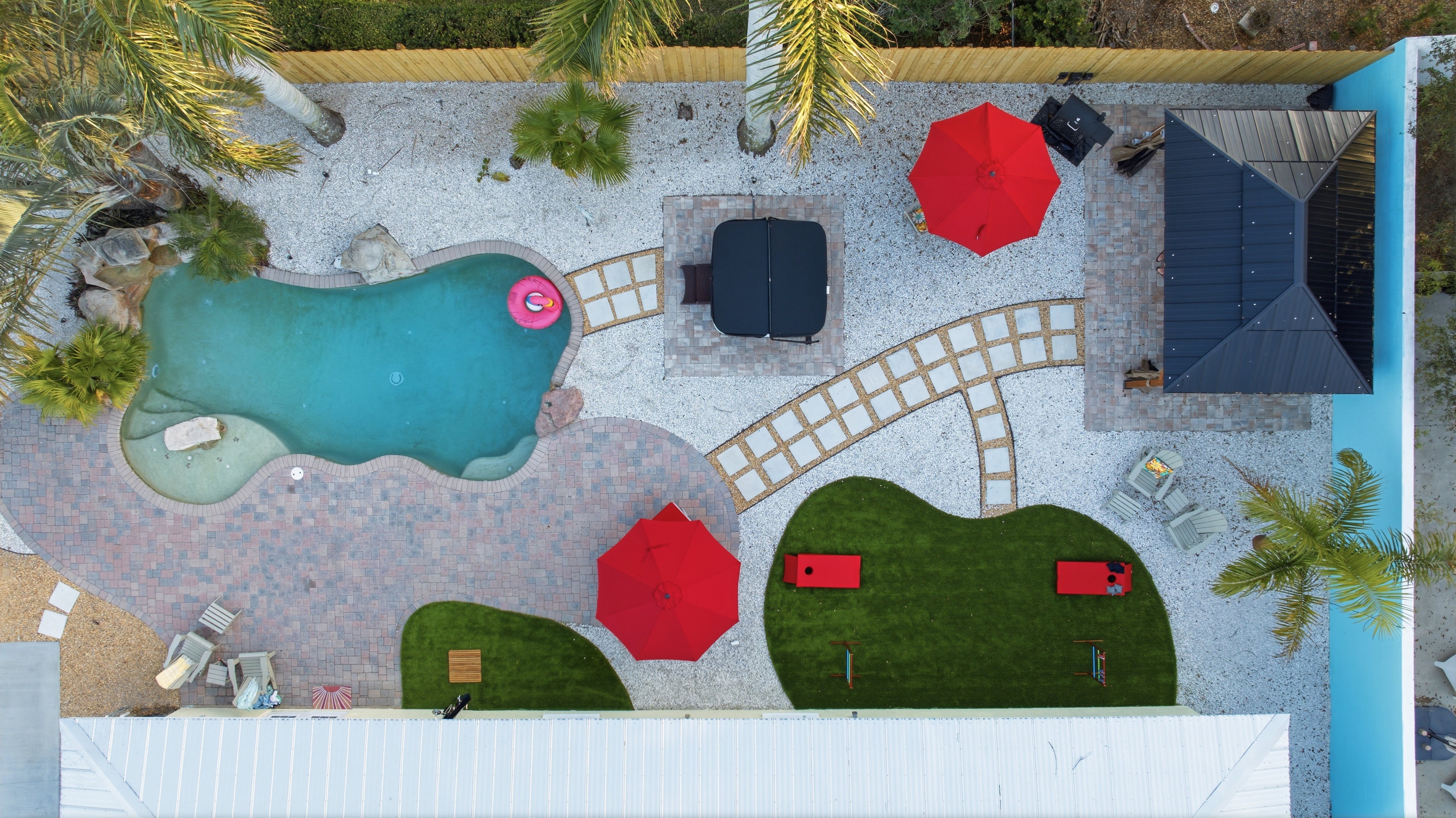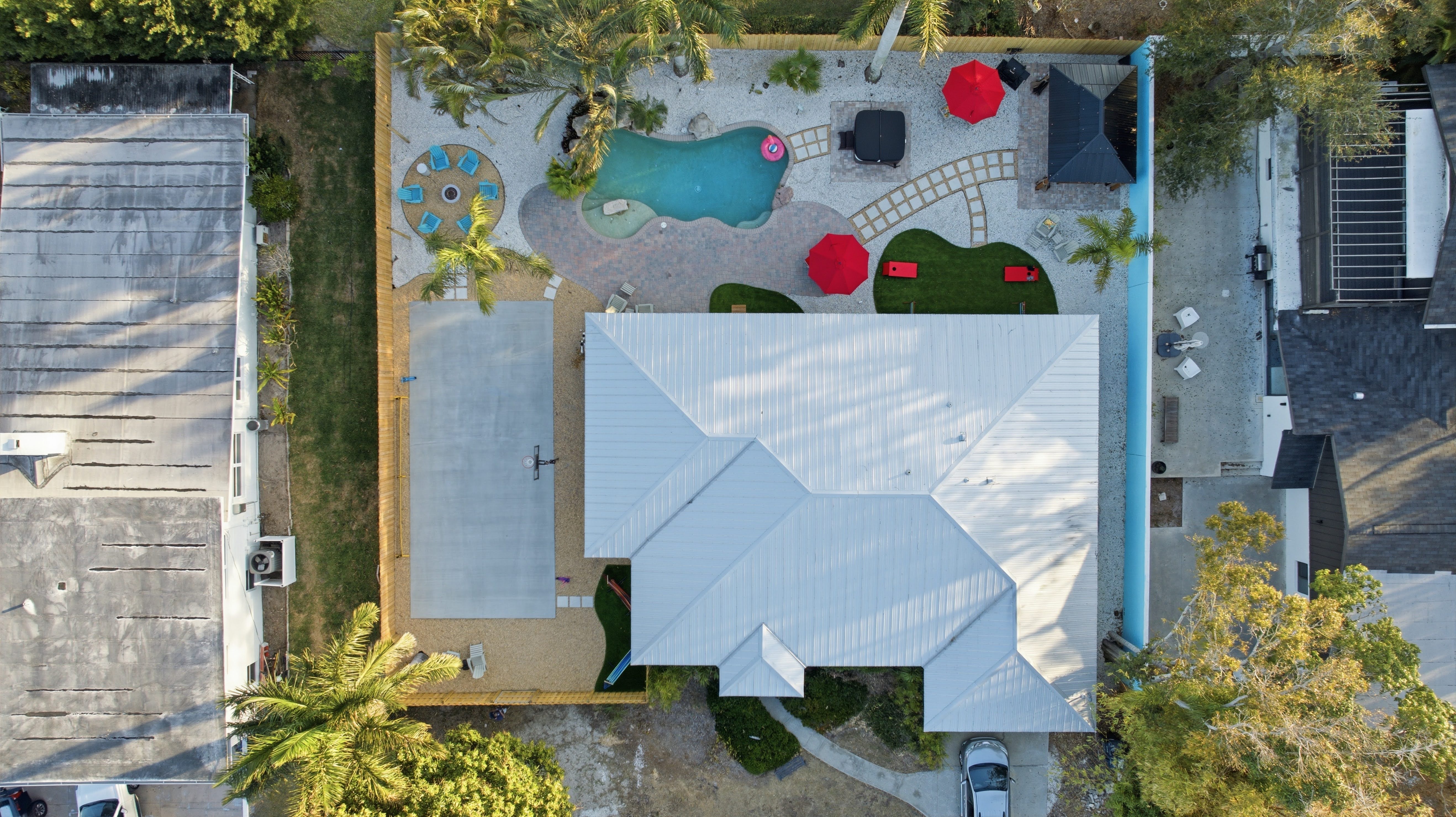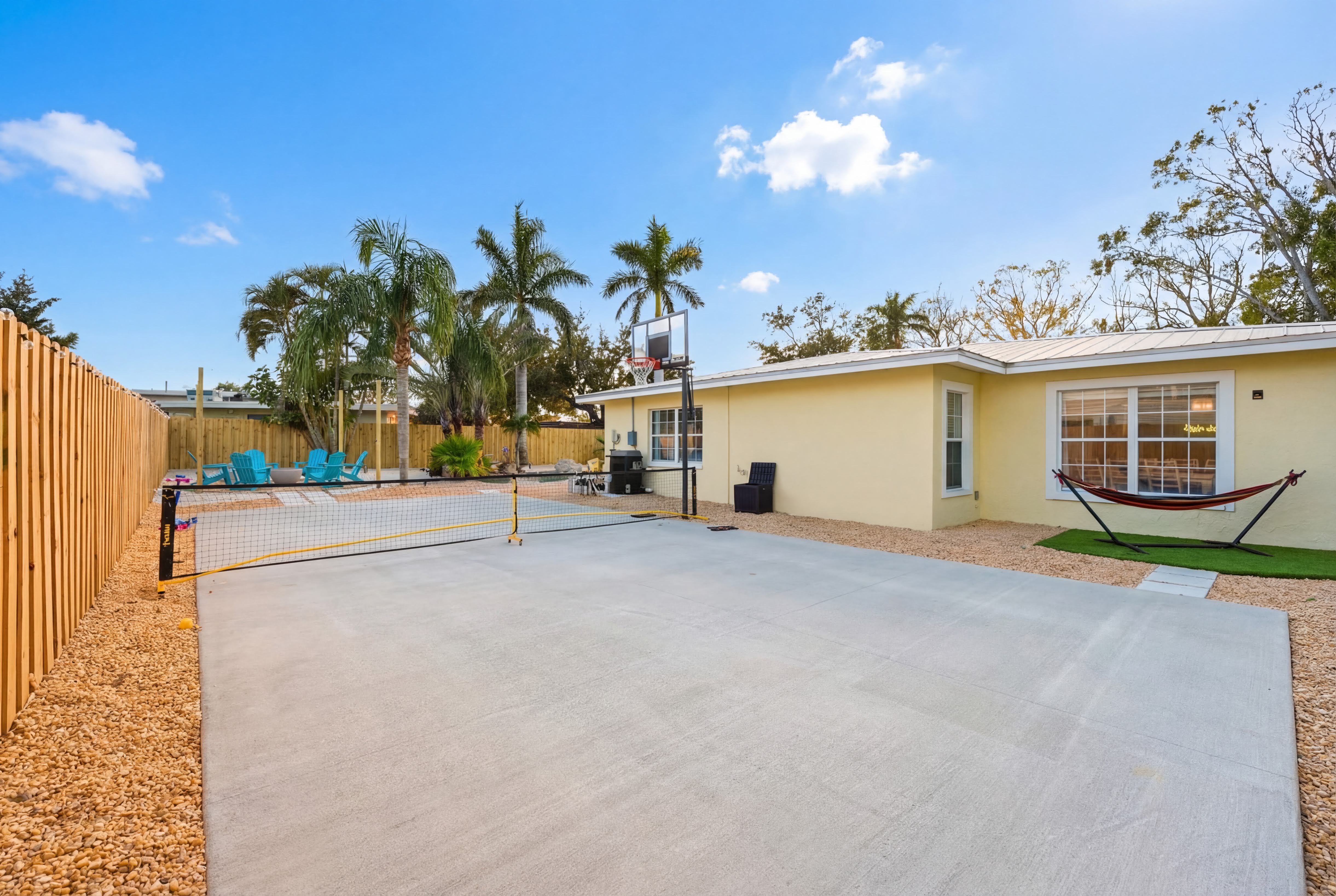 Pool gear is stored in outdoor storage hutches around the back of the house - floats, noodles, life jackets, outdoor games, etc. Please put umbrellas down when not in use and return pool items to storage before you depart! Beach gear is in the garage. Beach chairs, umbrellas, and sand toys can be returned here after use. The newly constructed pickleball court features a 16' x 38' playing area with a total court surface of 20' x 44'. Please always close the hot tub cover when not in use. Pool and Hot Tub use is at your own risk and children should always be attended in or near the pool. Be safe and remember to turn off the propane fire pit when not in use! Additionally we provide a pack 'n play and high chair, which can be found in the primary bedroom closet, and some children's toys and books for your little ones.